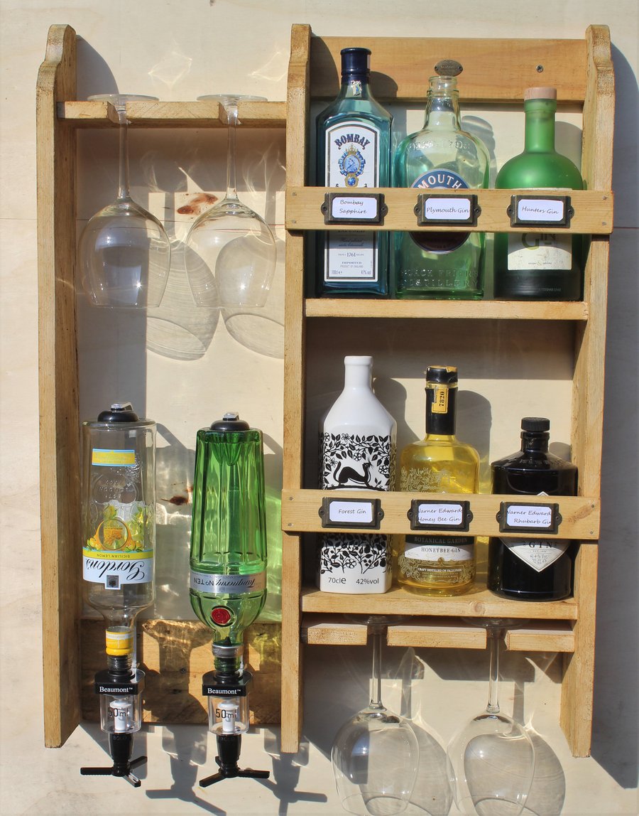 Gin and Tonic Bespoke Reclaimed Wooden Floating Gin and Tonic Spirit Rack With Bottle Holder Etsy Ireland
