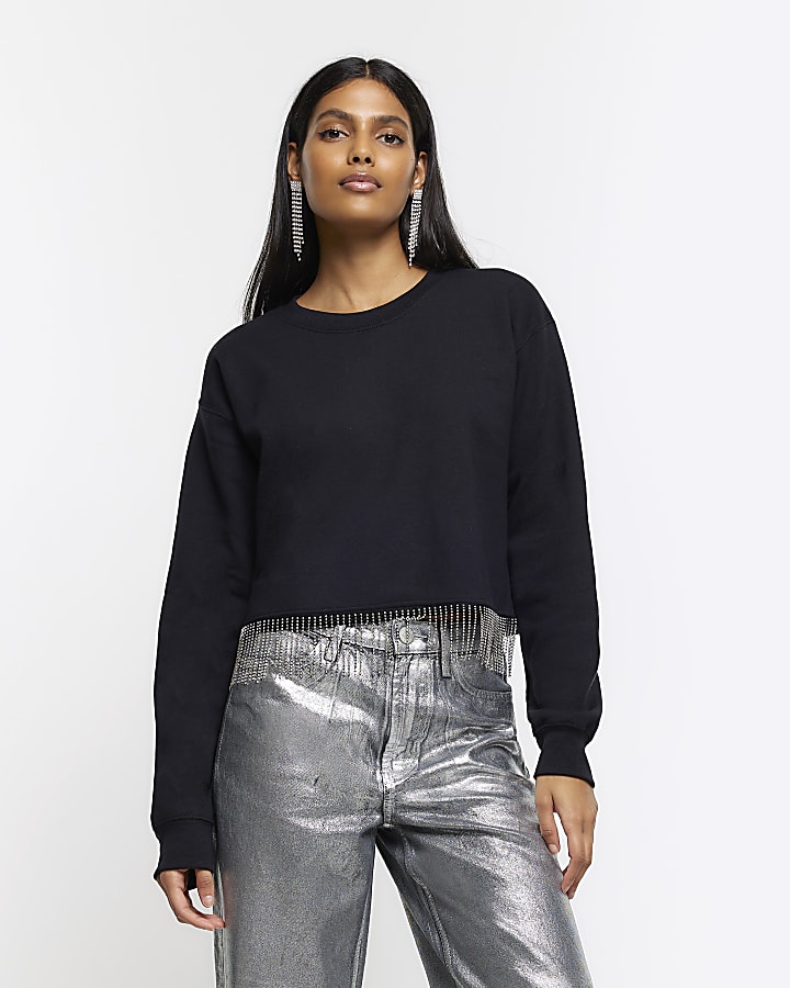 Product Name: River island black diamante hoodie sale