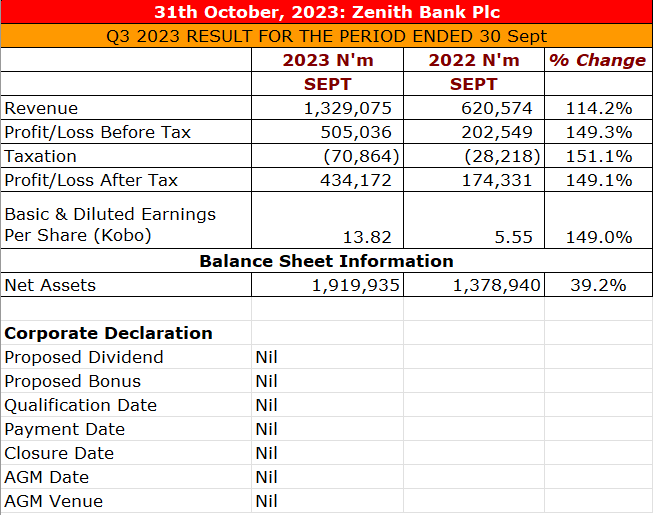 Product code: Zenith bank results sale