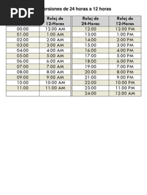 Reloj 24 horas a 12 horas sale, Conversiones de 24 Horas A 12 Horas PDF sale