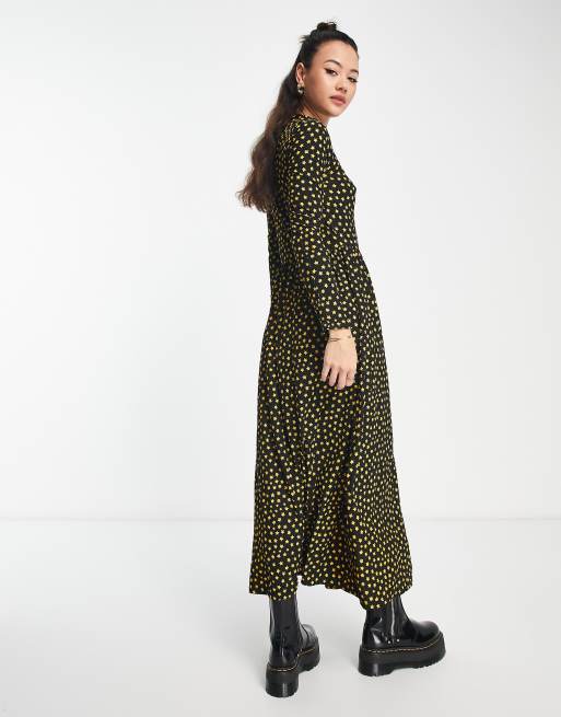 Product Name: Robe longue noire pois doré sale