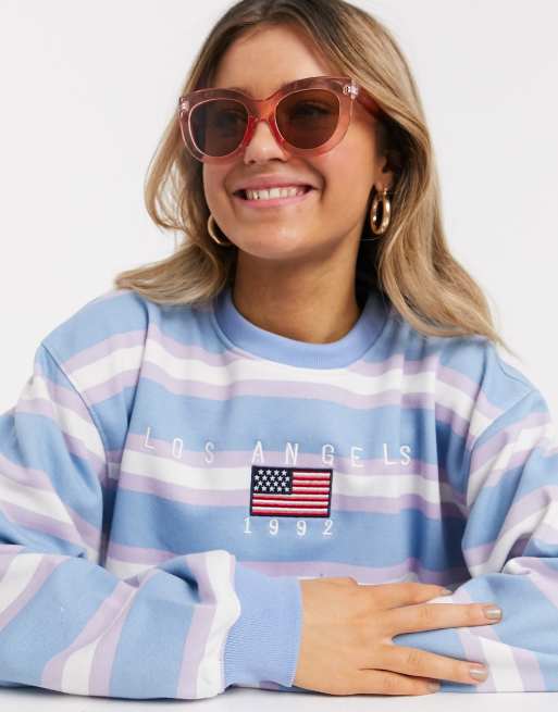 Product Name: Daisy street oversized sweatshirt with los angeles embroidery in retro strip sale
