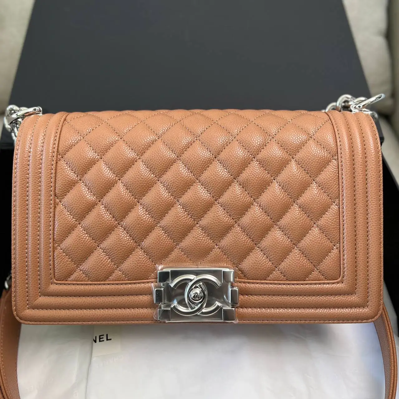 Product Name: Chanel camel boy bag sale
